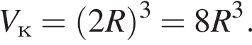 Решение. Ребро куба равно двум радиусам вписанного в куб шара, поэтому объем куба, выраженный через радиус вписанного в него шара, даётся формулой