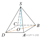 Решение. В правильной пирамиде вершина проецируется в центр основания, следовательно, SO является высотой пирамиды. Тогда по теореме Пифагора
